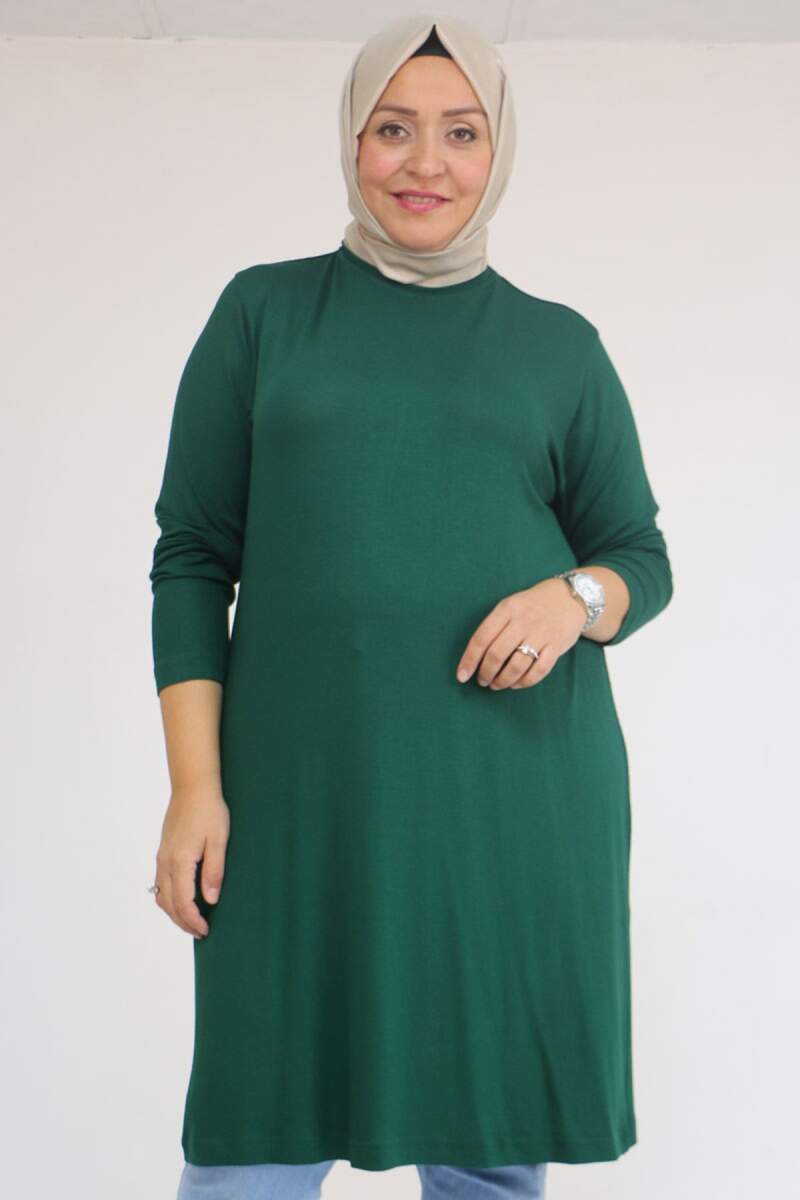 58122 Büyük Beden Basic Çilek Tunik - Zümrüt