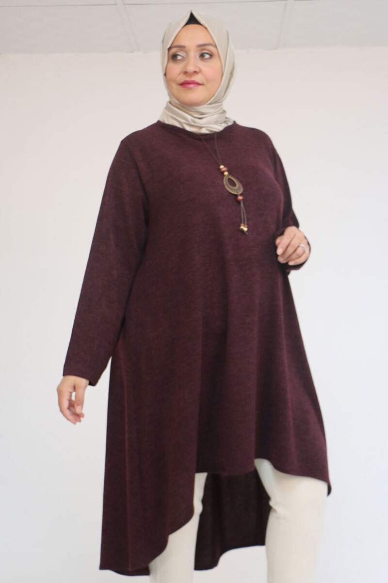58125 Büyük Beden Eteği Oval Kesim Kolyeli Mir Tunik - Mürdüm
