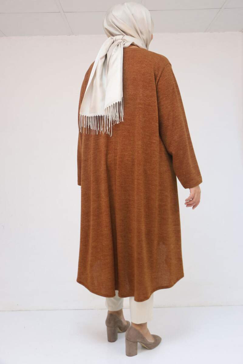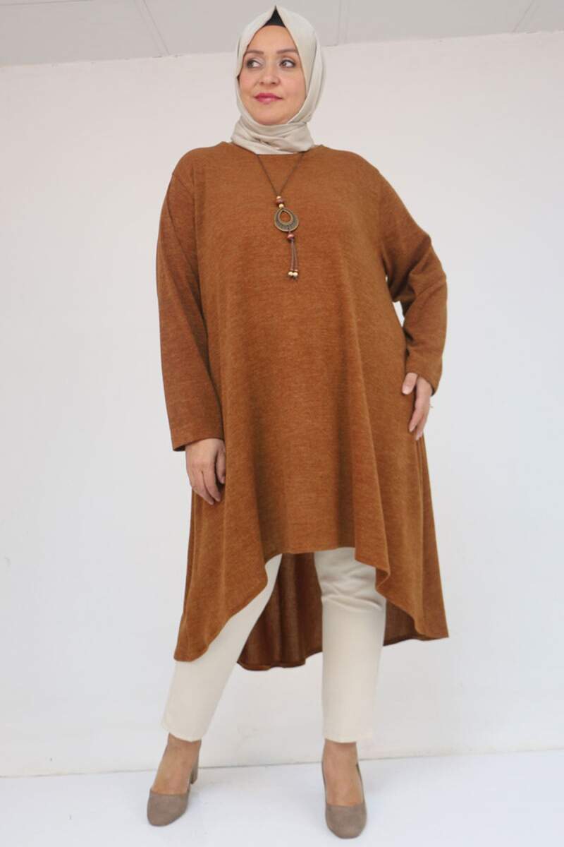 58125 Büyük Beden Eteği Oval Kesim Kolyeli Mir Tunik - Taba