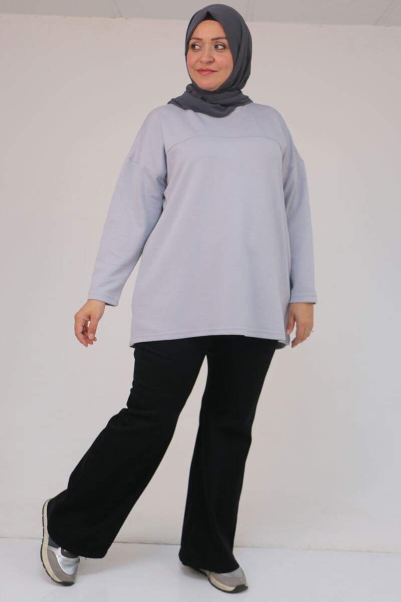 58132 Büyük Beden Önü Çıma Detaylı Yanı Yırtmaçlı Modal Tunik - Gri