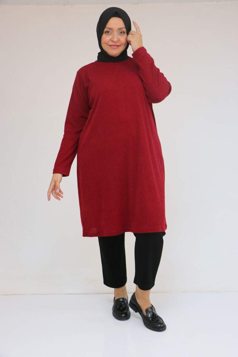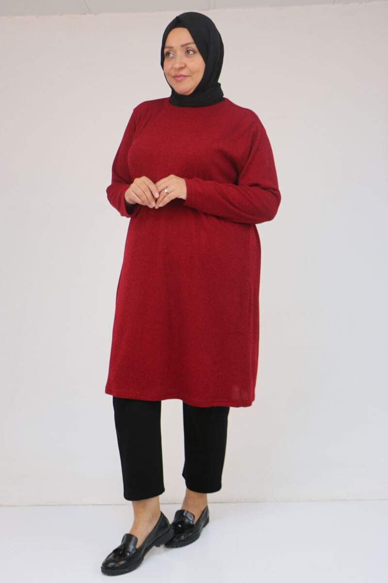 58140 Büyük Beden Basic Mir Tunik - Bordo