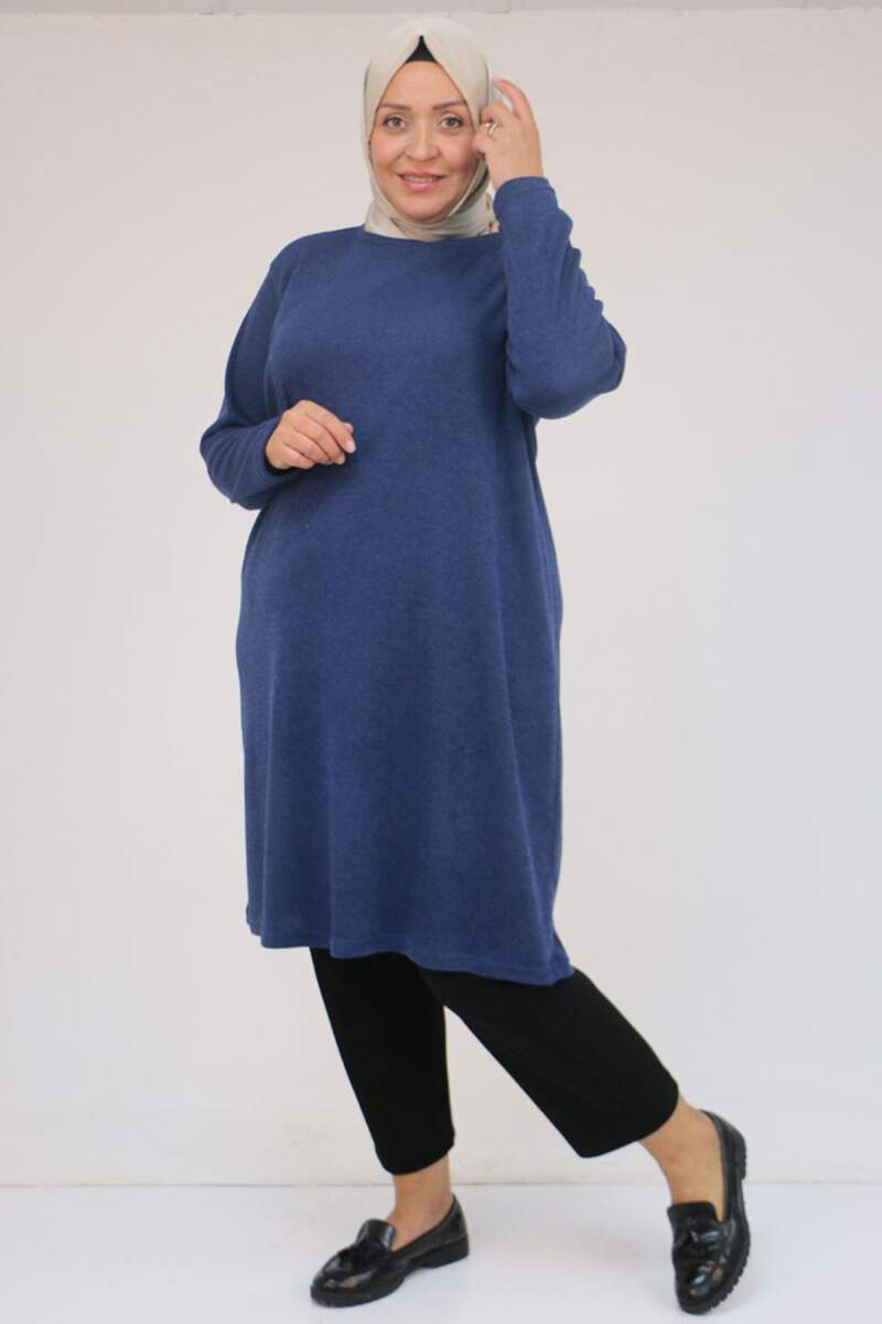 58140 Büyük Beden Basic Mir Tunik - İndigo