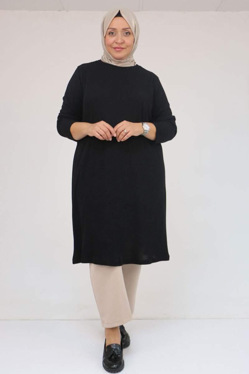 58140 Büyük Beden Basic Mir Tunik - Siyah
