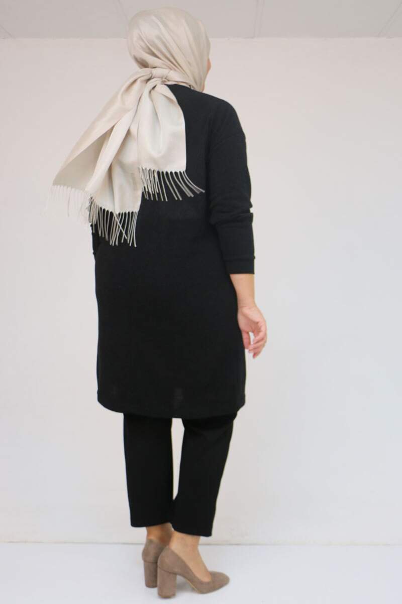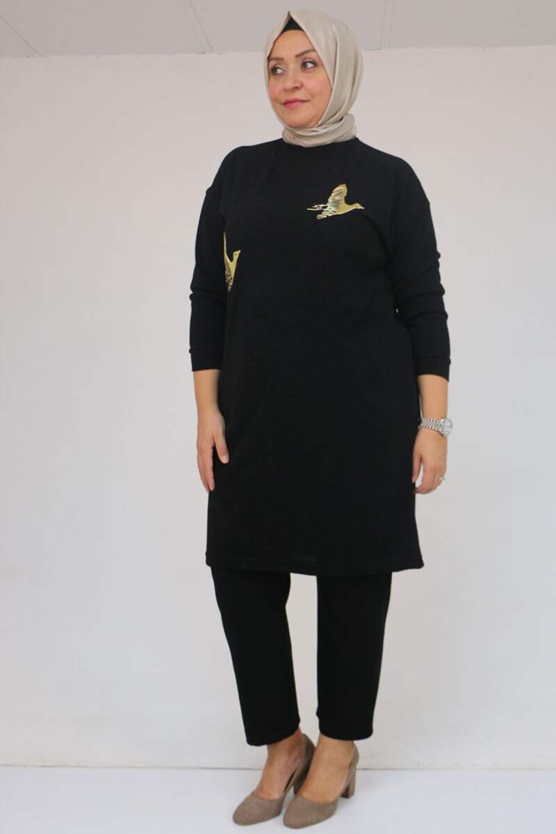 58143 Büyük Beden Düşük Kollu Aksesuar Detaylı Mir Tunik - Siyah