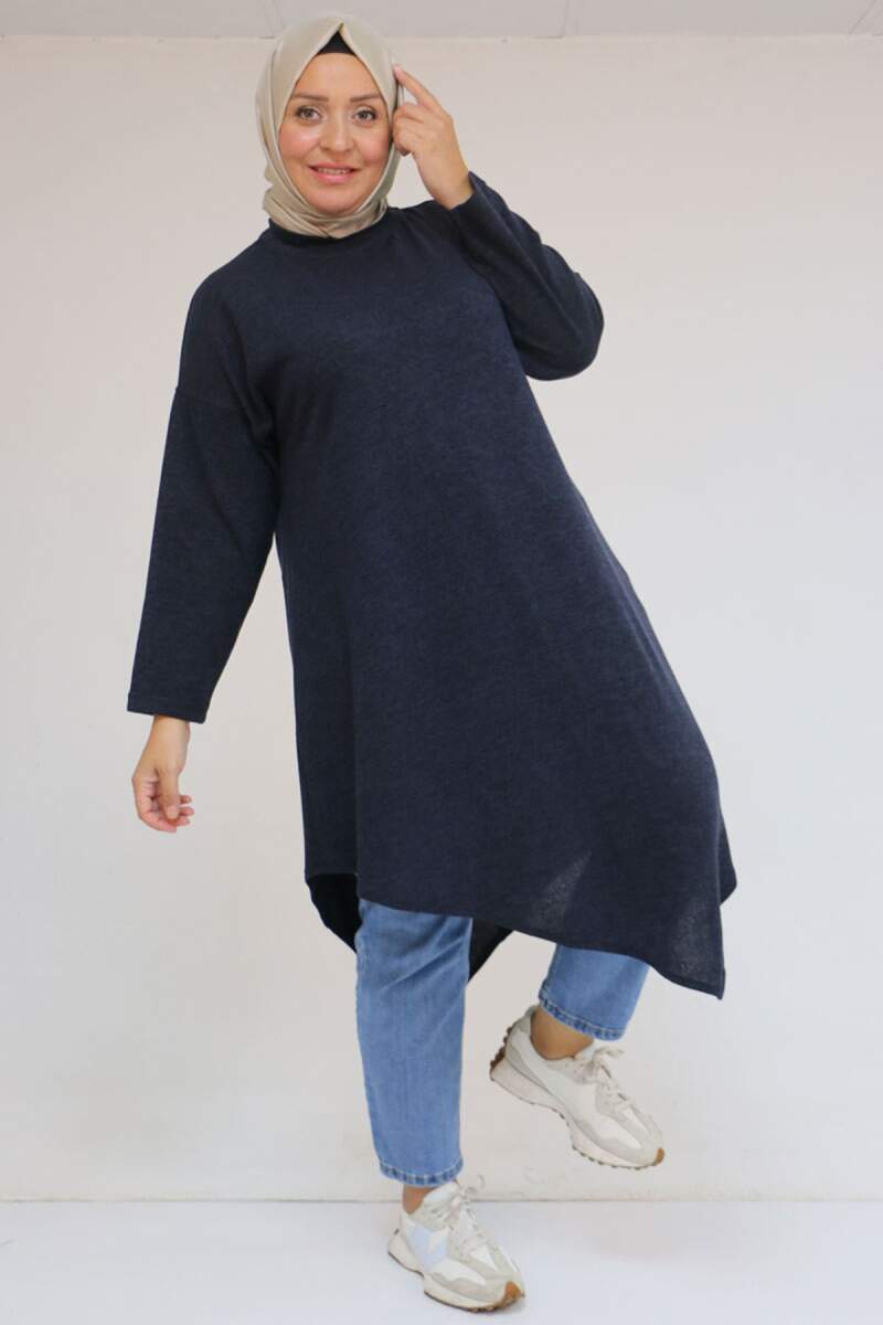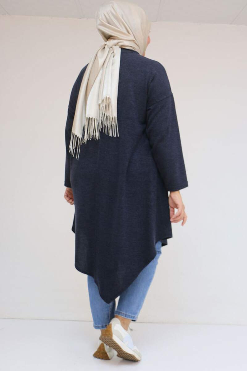 58144 Büyük Beden Hakim Yakalı Mir Tunik - Lacivert