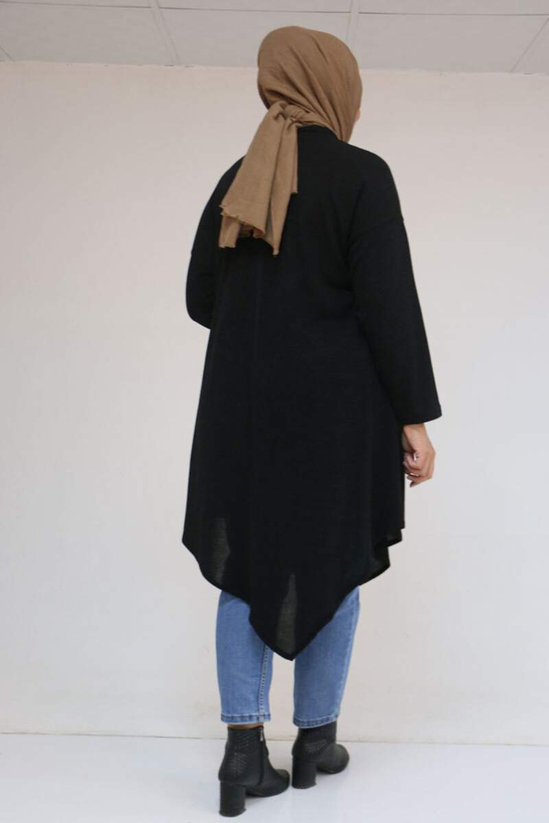 58144 Büyük Beden Hakim Yakalı Mir Tunik - Siyah