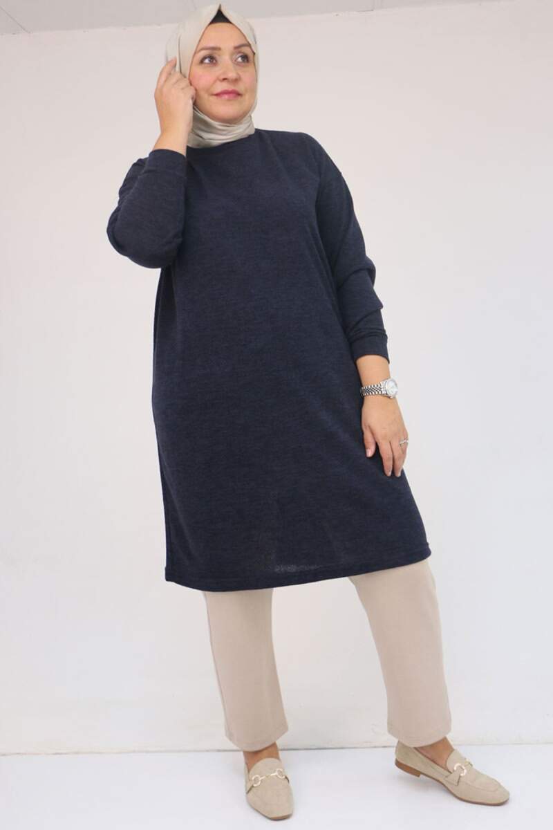 58148 Büyük Beden Düşük Kollu Mir Tunik - Lacivert