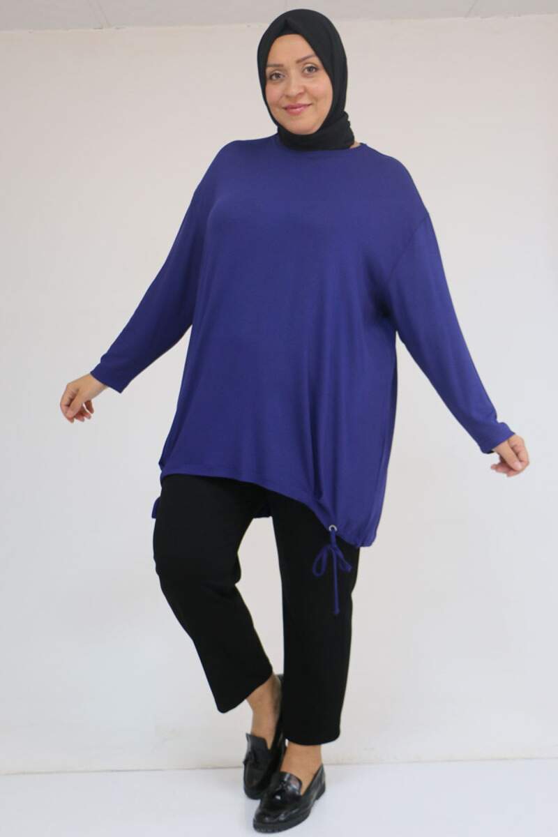 58150 Büyük Beden Kuş Gözü Bağlama Detaylı Mir Tunik - İndigo