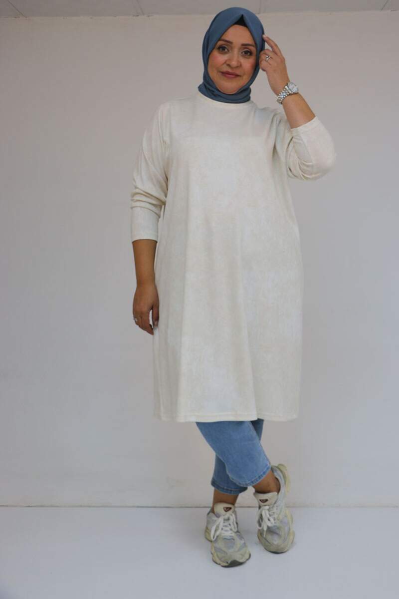 58153 Büyük Beden Basic Batik Modal Tunik - Batik Ekru