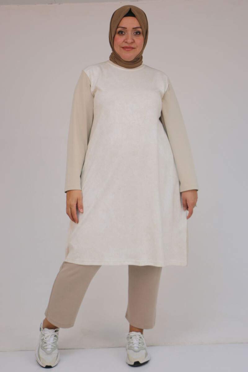 58161 Büyük Beden Basic Modal Tunik - Bej