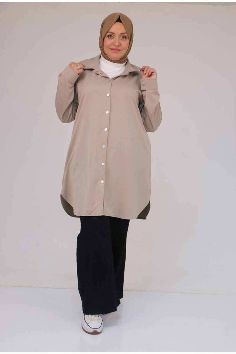 58168 Büyük Beden Erkek Yakalı Çıtçıtlı Modal Tunik - Bej
