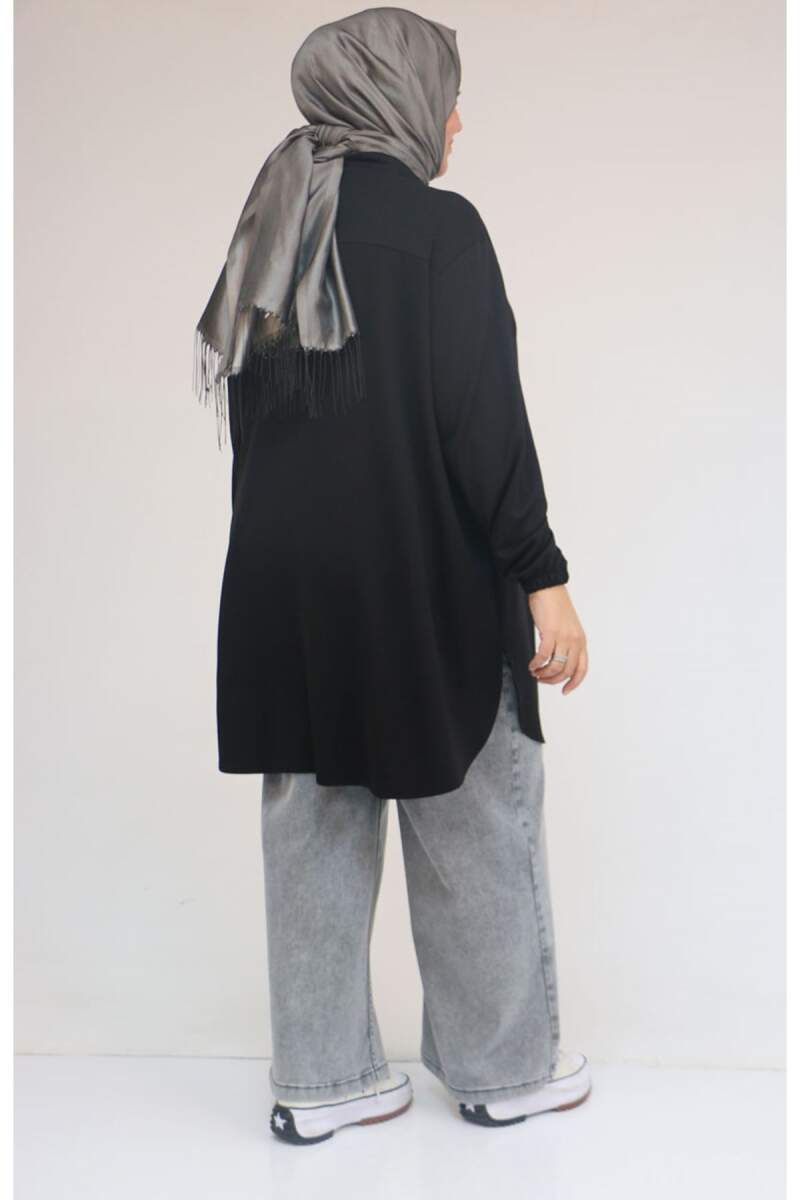 58169 Büyük Beden Hakim Yaka Çıtçıtlı Modal Tunik - Siyah