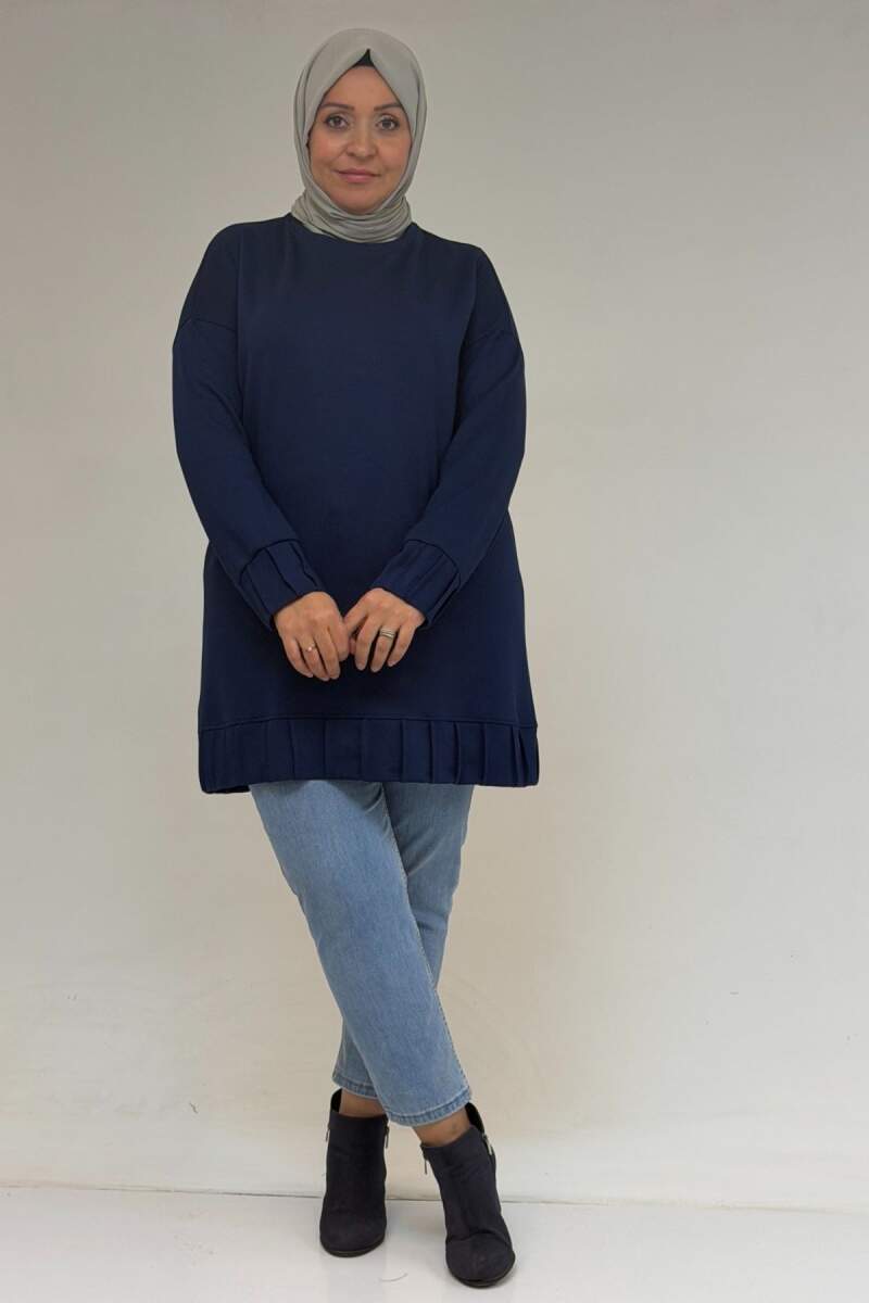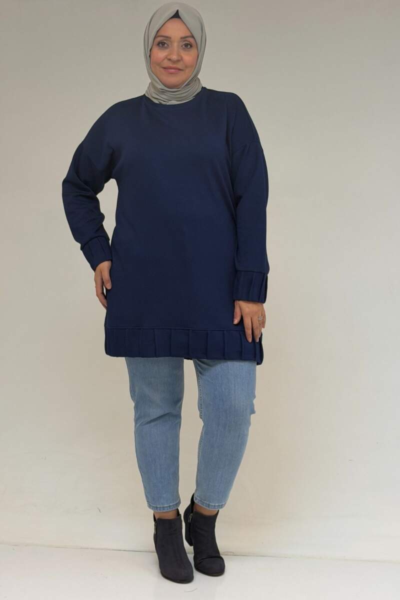 58173 Büyük Beden Çıma Detaylı Modal Tunik - İndigo