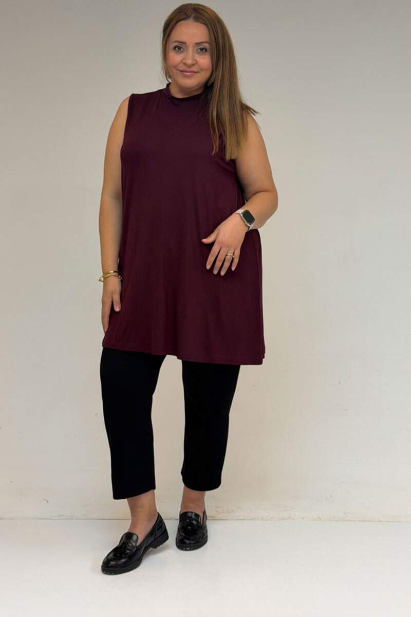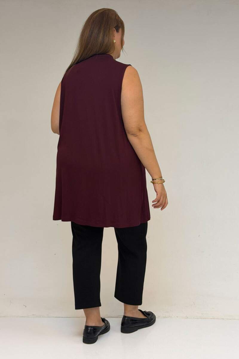 58501 Büyük Beden Hakim Yakalı Penye İçlik - Bordo