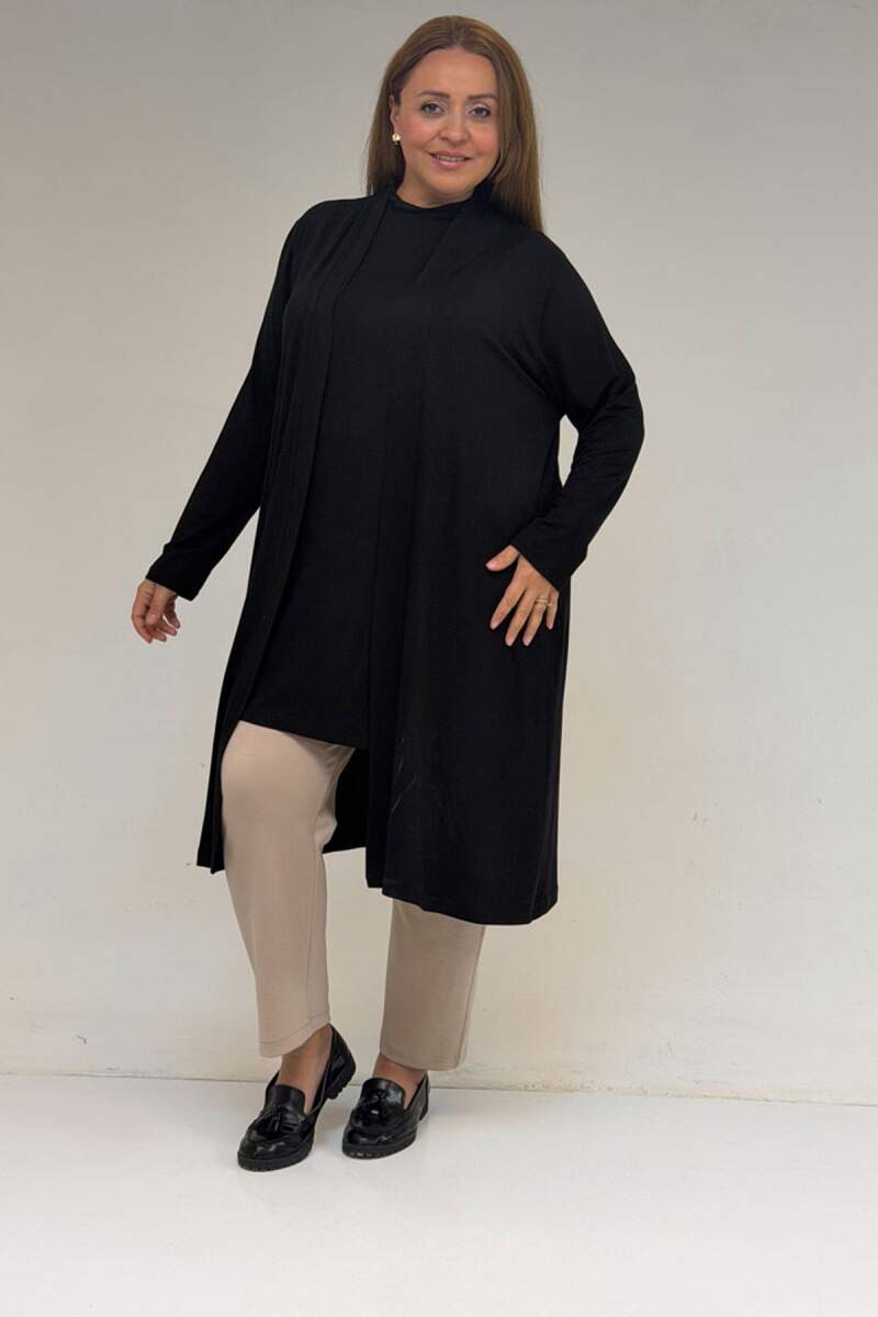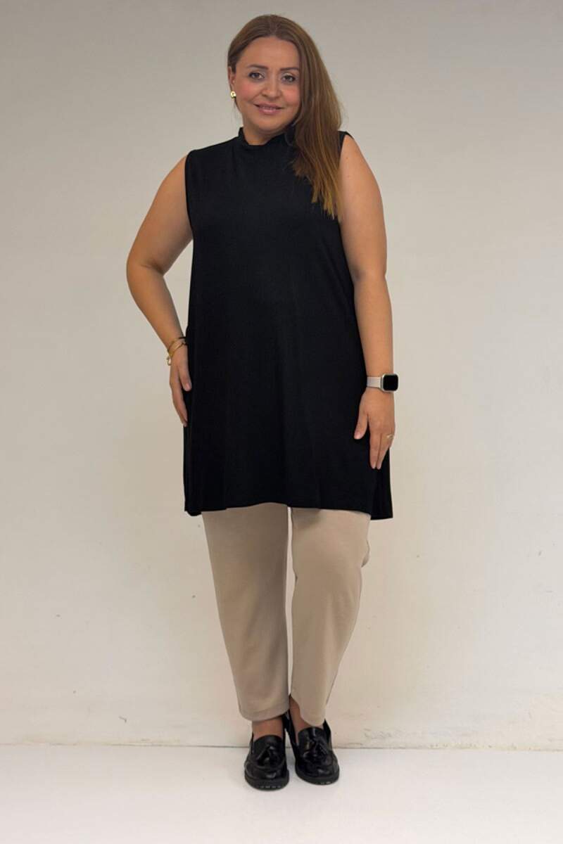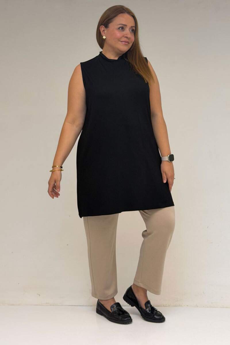 58501 Büyük Beden Hakim Yakalı Penye İçlik - Siyah