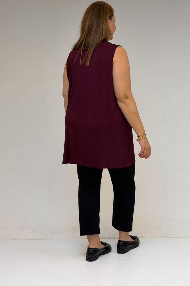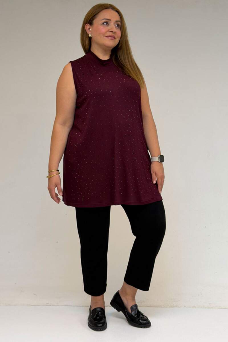 58506 Büyük Beden Taş Baskılı Penye İçlik - Bordo