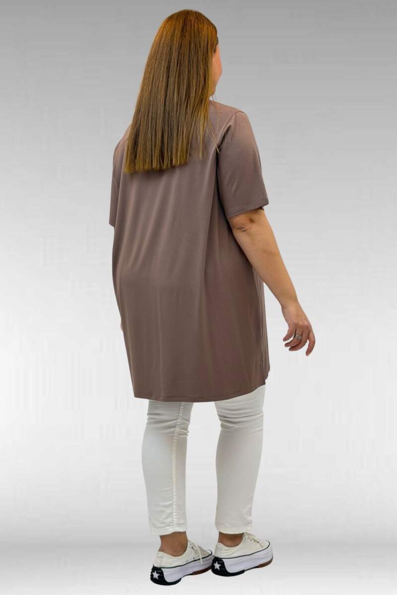 58507 Büyük Beden Yakası Biyeli Penye Tişört - Vizon