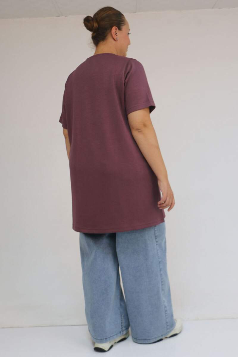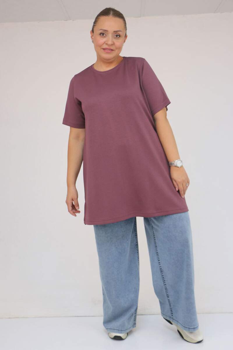 58508 Büyük Beden Yakası Biyeli Modal Tişört - Gül Kurusu