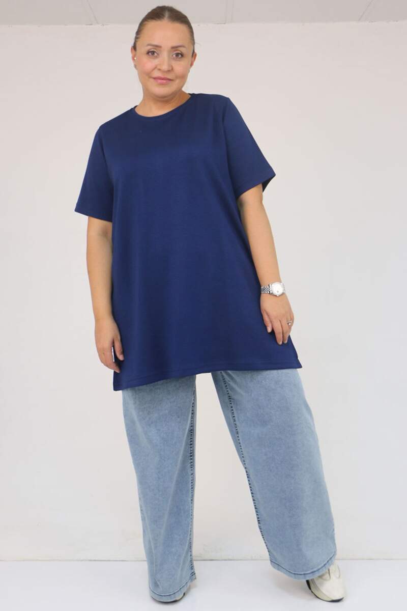 58508 Büyük Beden Yakası Biyeli Modal Tişört - İndigo