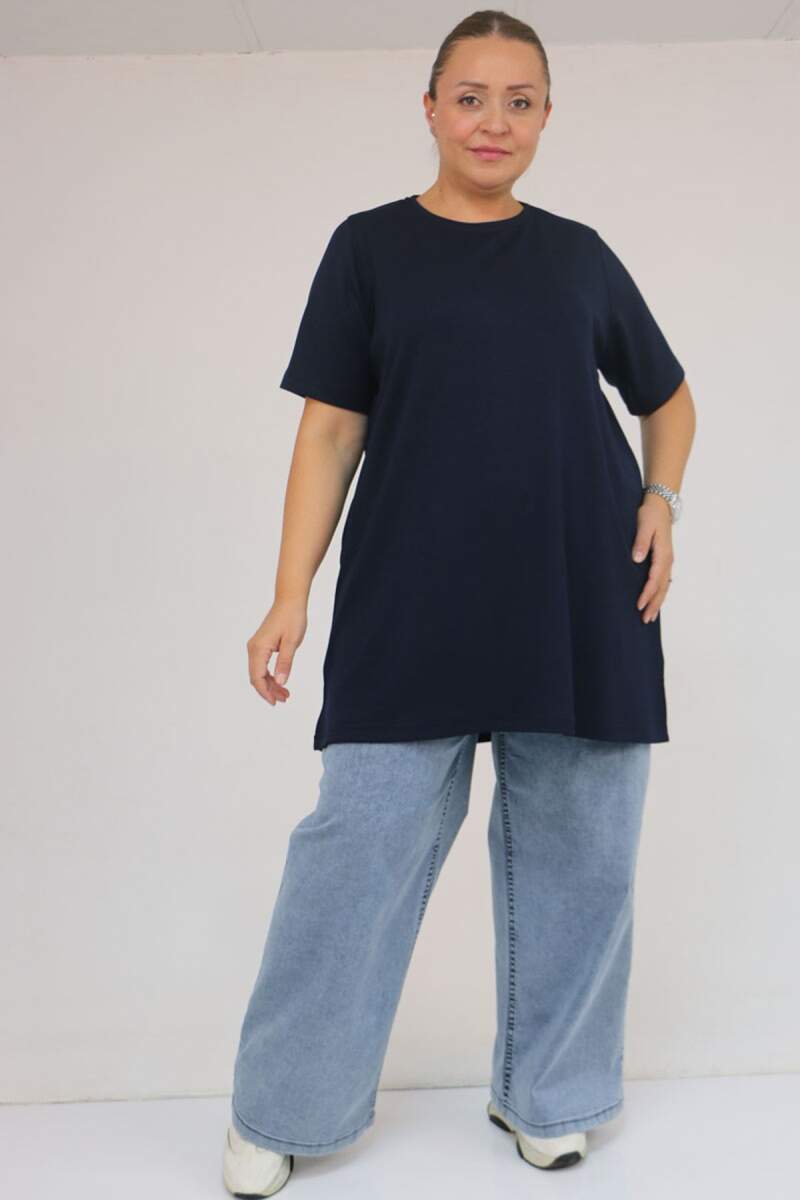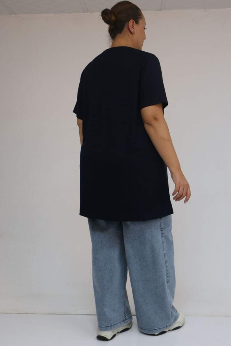58508 Büyük Beden Yakası Biyeli Modal Tişört - Lacivert