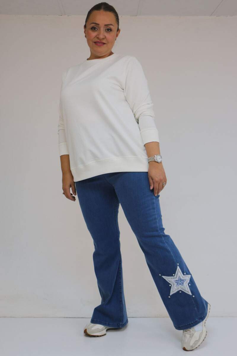 59033 Büyük Beden İspanyol Paça Aksesuar Detaylı Kot Pantolon - Mavi