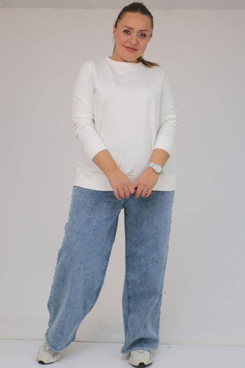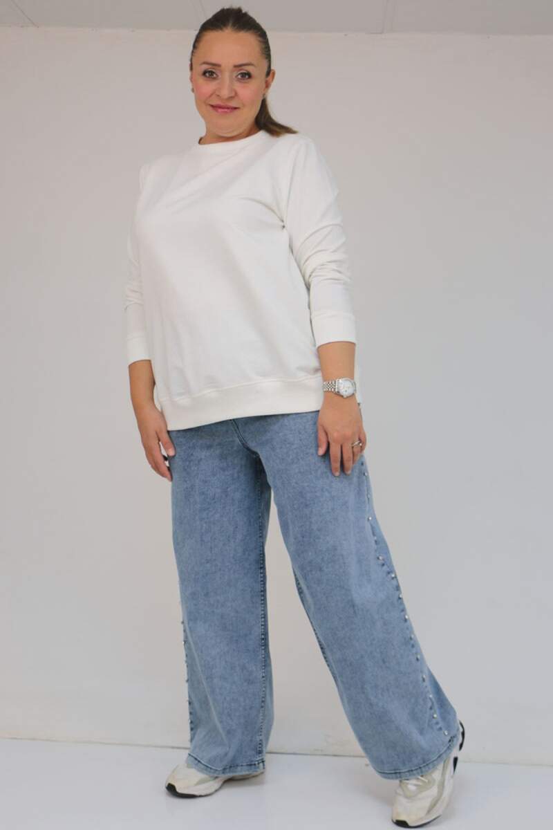 59034 Büyük Beden Bolpaça Taş Detaylı Kot Pantolon - Mavi