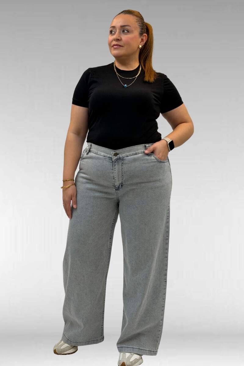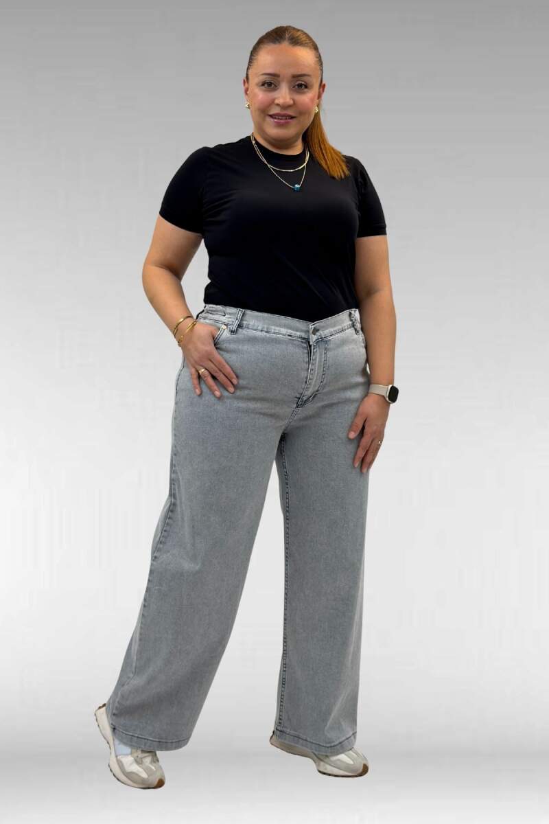 59037 Büyük Beden Önü Taşlı Bol Paça Kot Pantolon - Gri