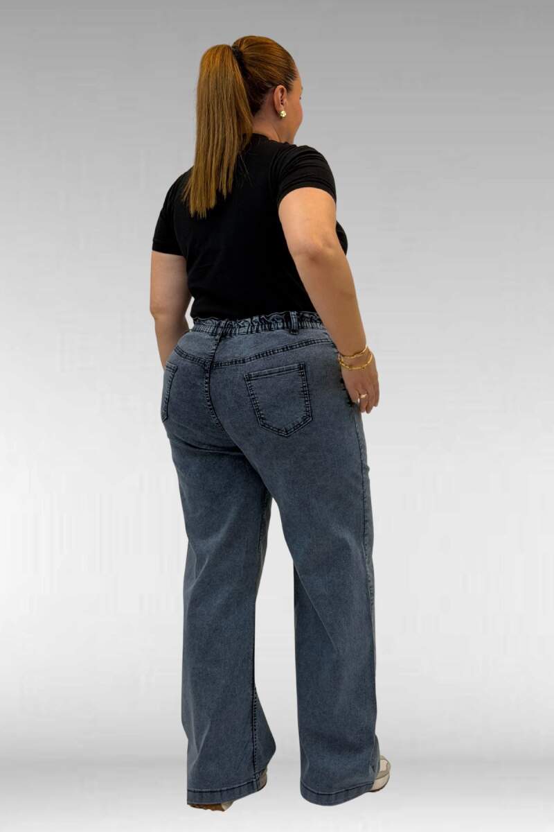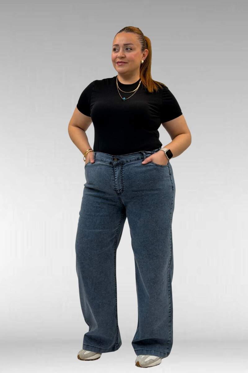 59037 Büyük Beden Önü Taşlı Bol Paça Kot Pantolon - Lacivert
