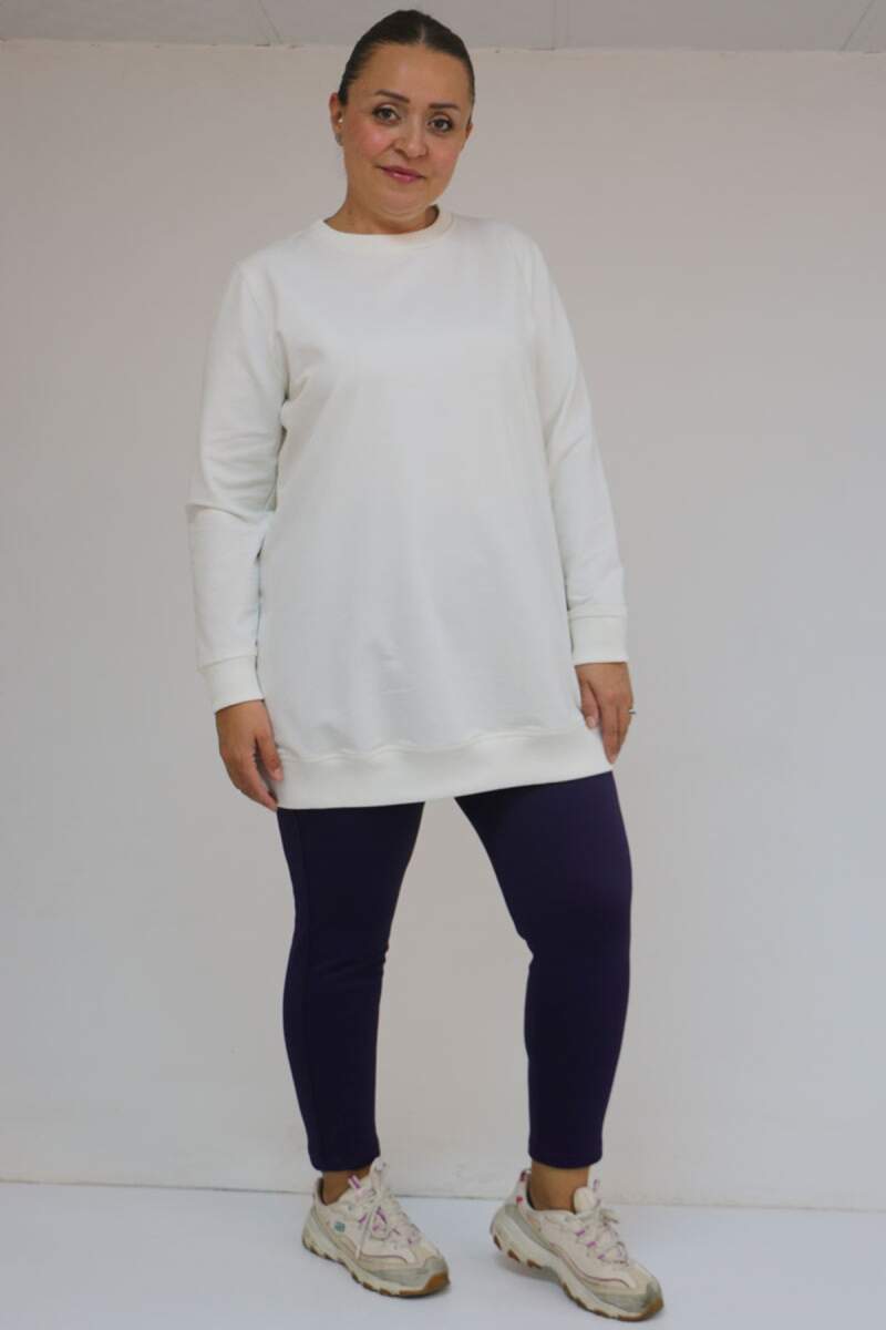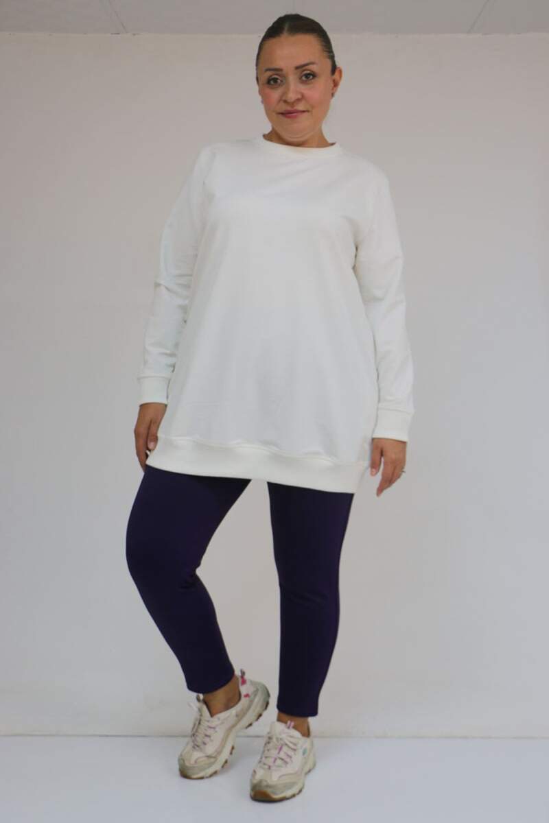 59503 Büyük Beden Beli Lastikli Tayt - Mor