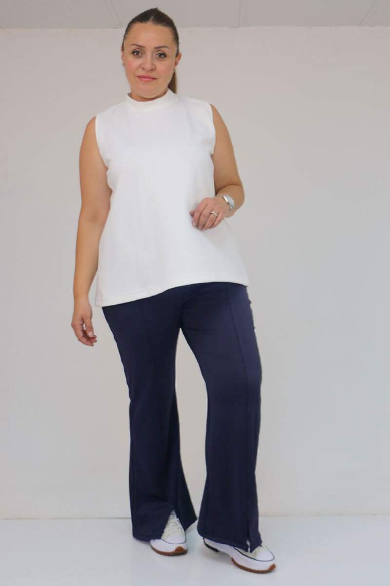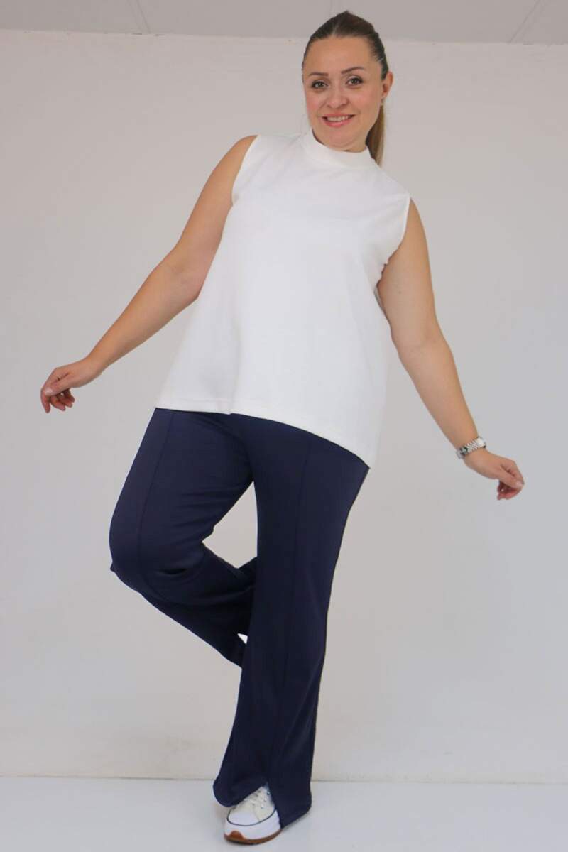 59506 Büyük Beden Paçası Yırtmaçlı İspanyol Paça Tayt Pantolon - Lacivert