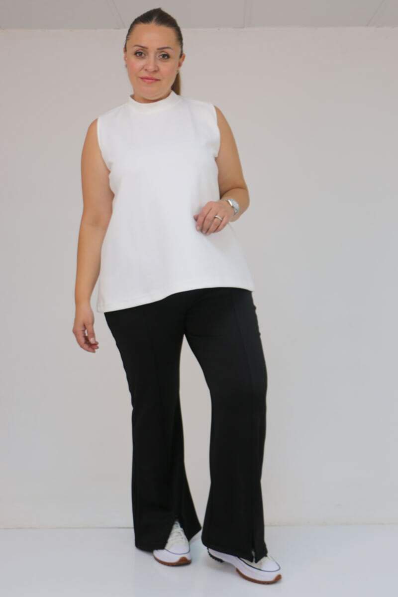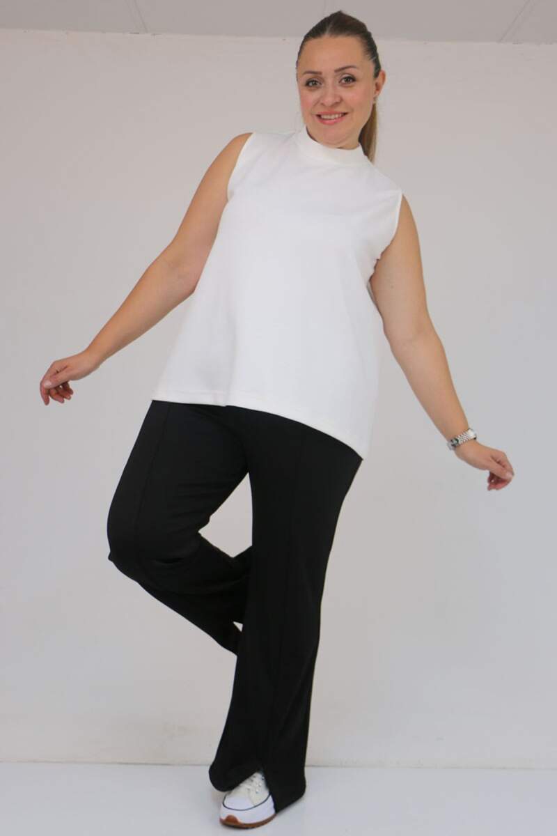 59506 Büyük Beden Paçası Yırtmaçlı İspanyol Paça Tayt Pantolon - Siyah
