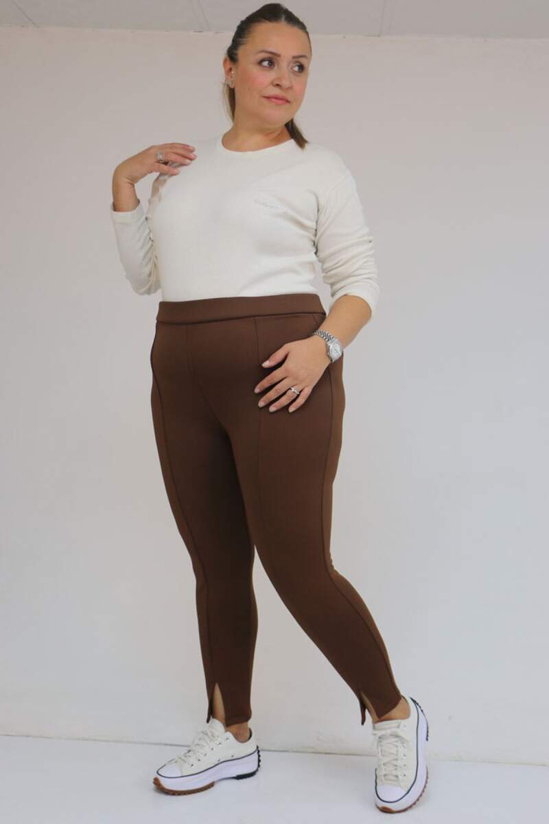 59507 Büyük Beden Önü Yırtmaçlı İçi Şardonlu Tayt - Kahve