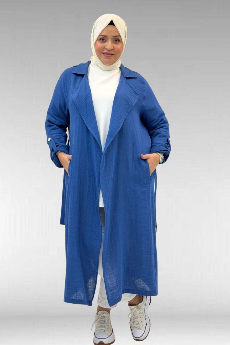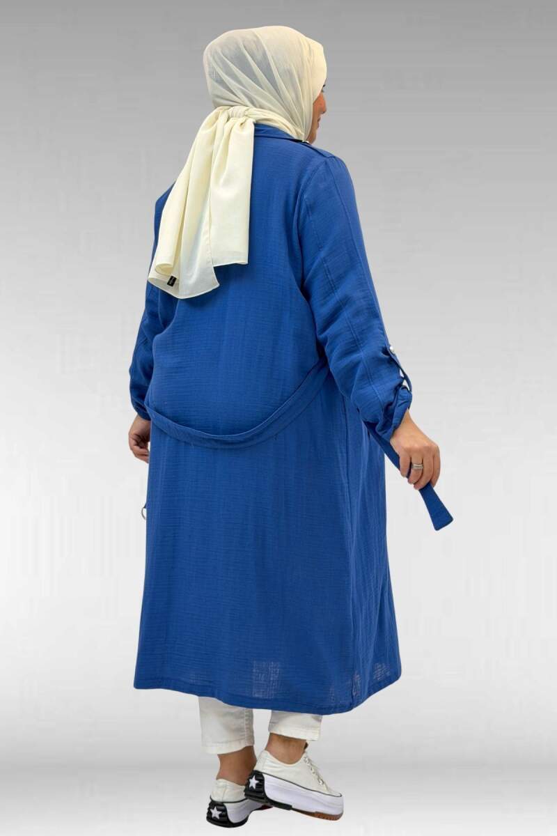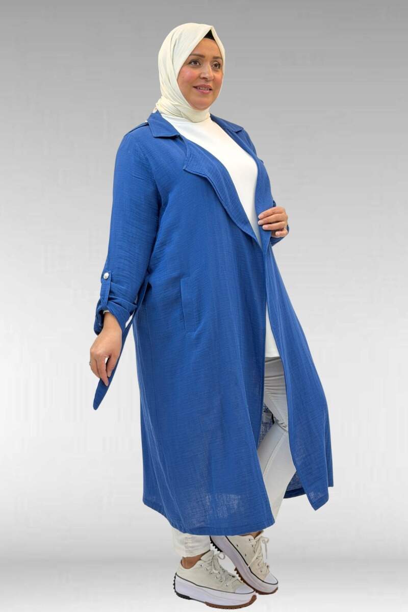 63006 Büyük Beden D Halka Detaylı Müslin Trençkot - İndigo
