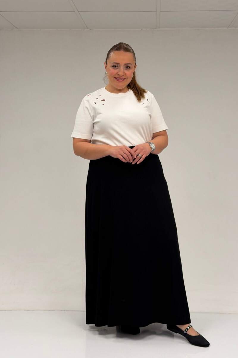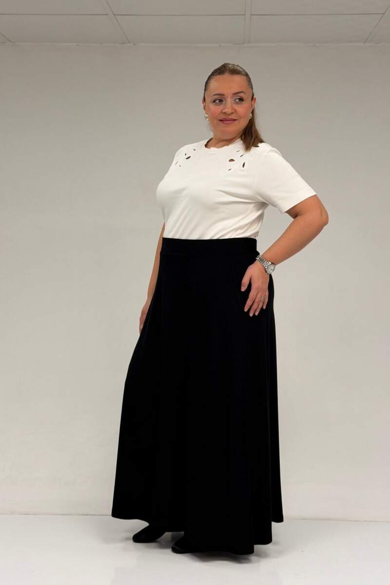 65001 Büyük Beden Basic Penye Etek - Siyah