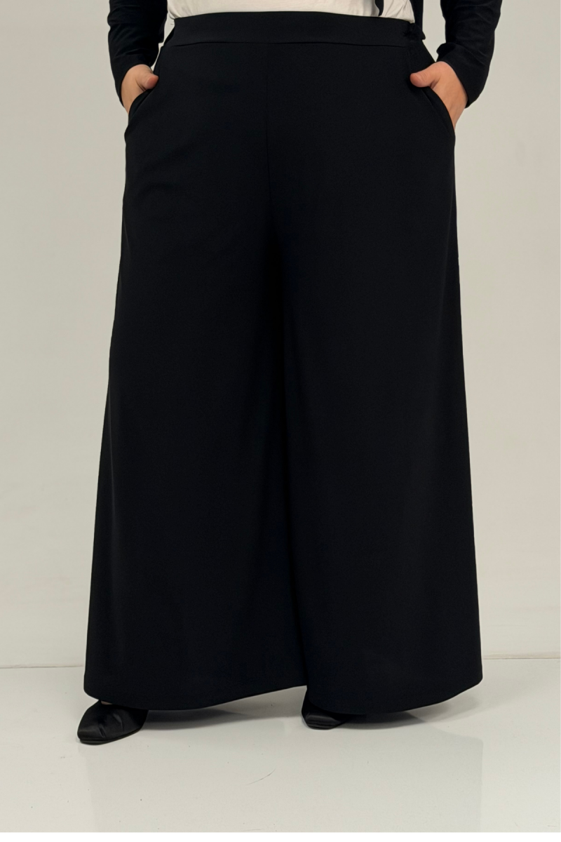 67004 Büyük Beden Önü Ve Arkası Pelerin Detaylı Sandy Pantolonlu Takım - Siyah