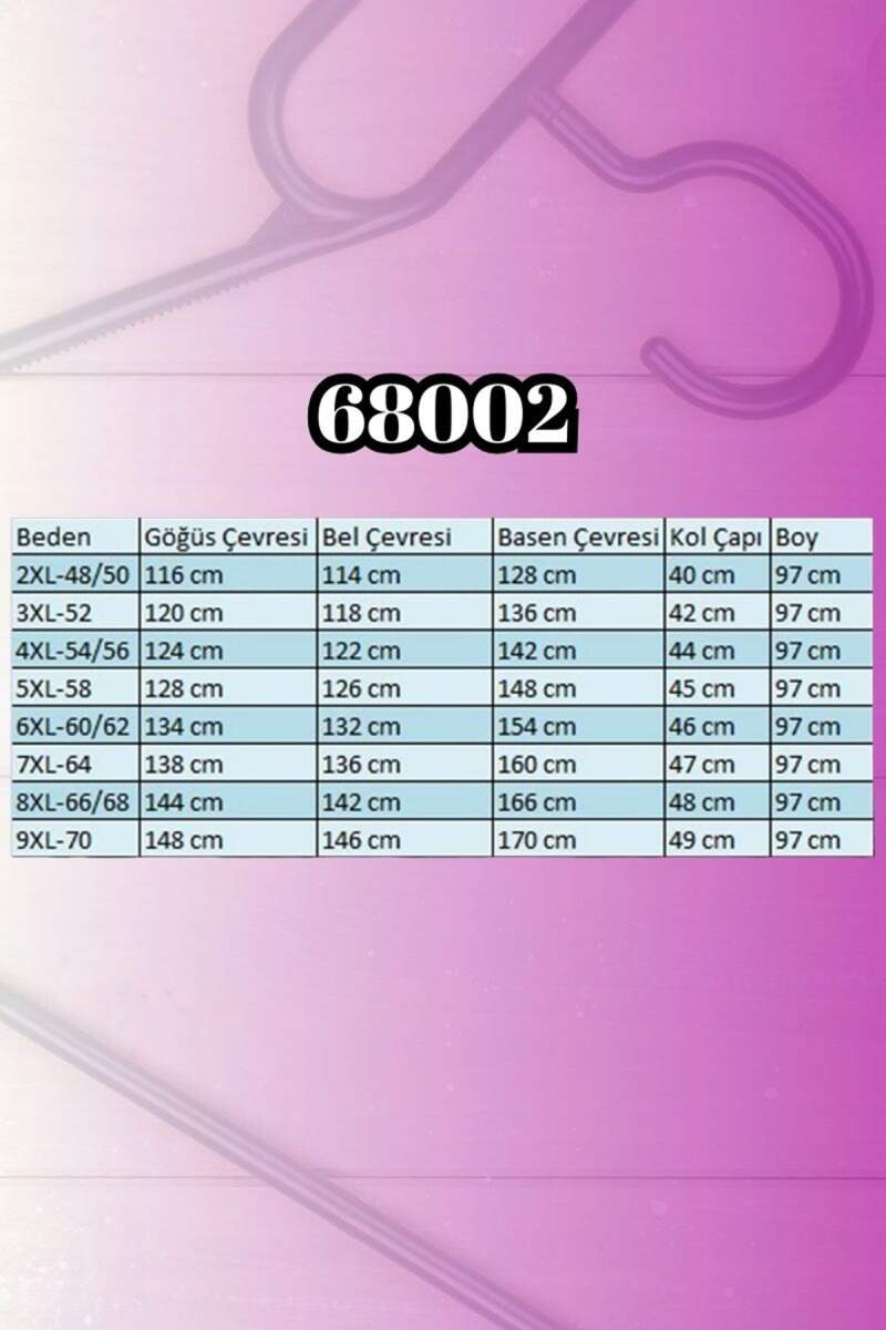 BEL GENİŞLİĞİ :88 cm GÖĞÜS GENİŞLİĞİ :105 cm BASEN :116 cm BOY :170 cm