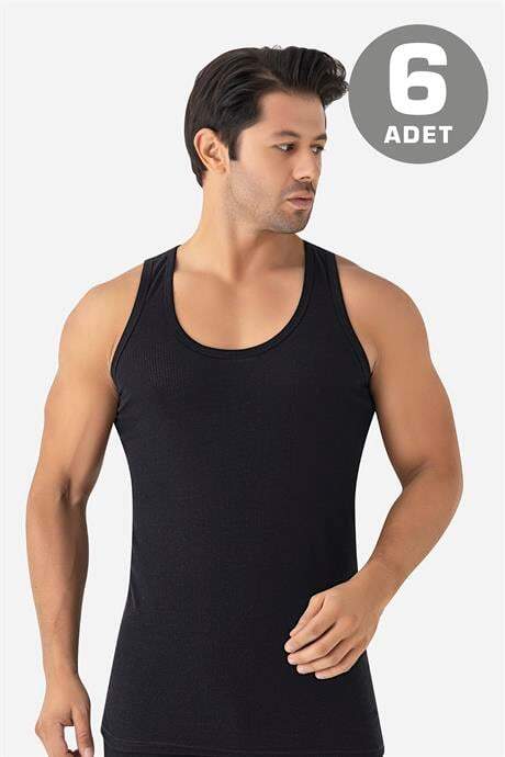 6'lı Paket Siyah Erkek Fileli Atlet Pamuklu Delikli Yazlık Erkek Atlet
