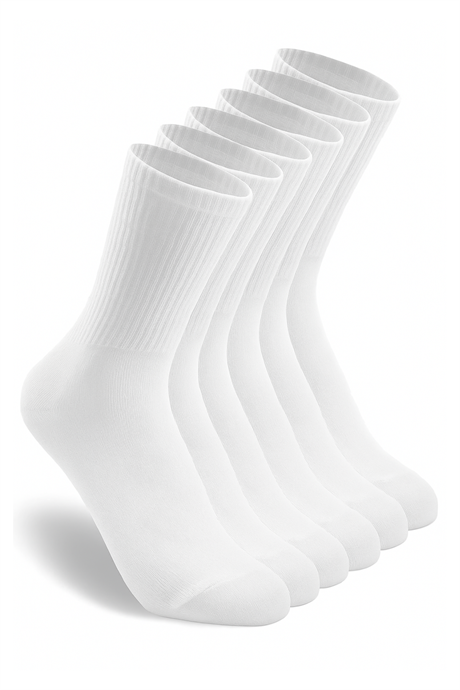 6'lı Unisex Pamuklu Düz Beyaz Tenis Çorap Seti Soket Boy