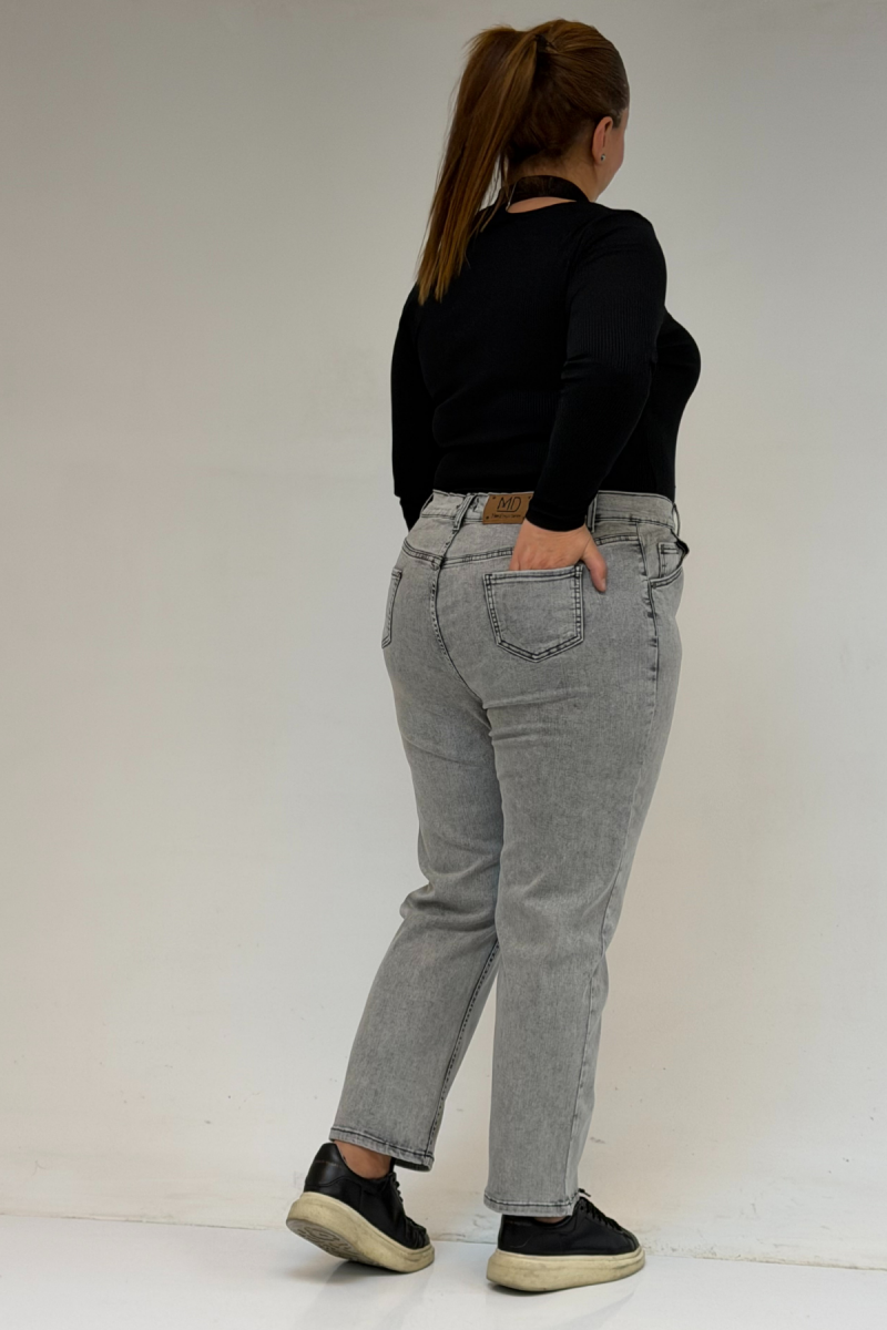 9125-6 Büyük Beden Boy Friend Kot Pantolon - Kar Yıkama Gri