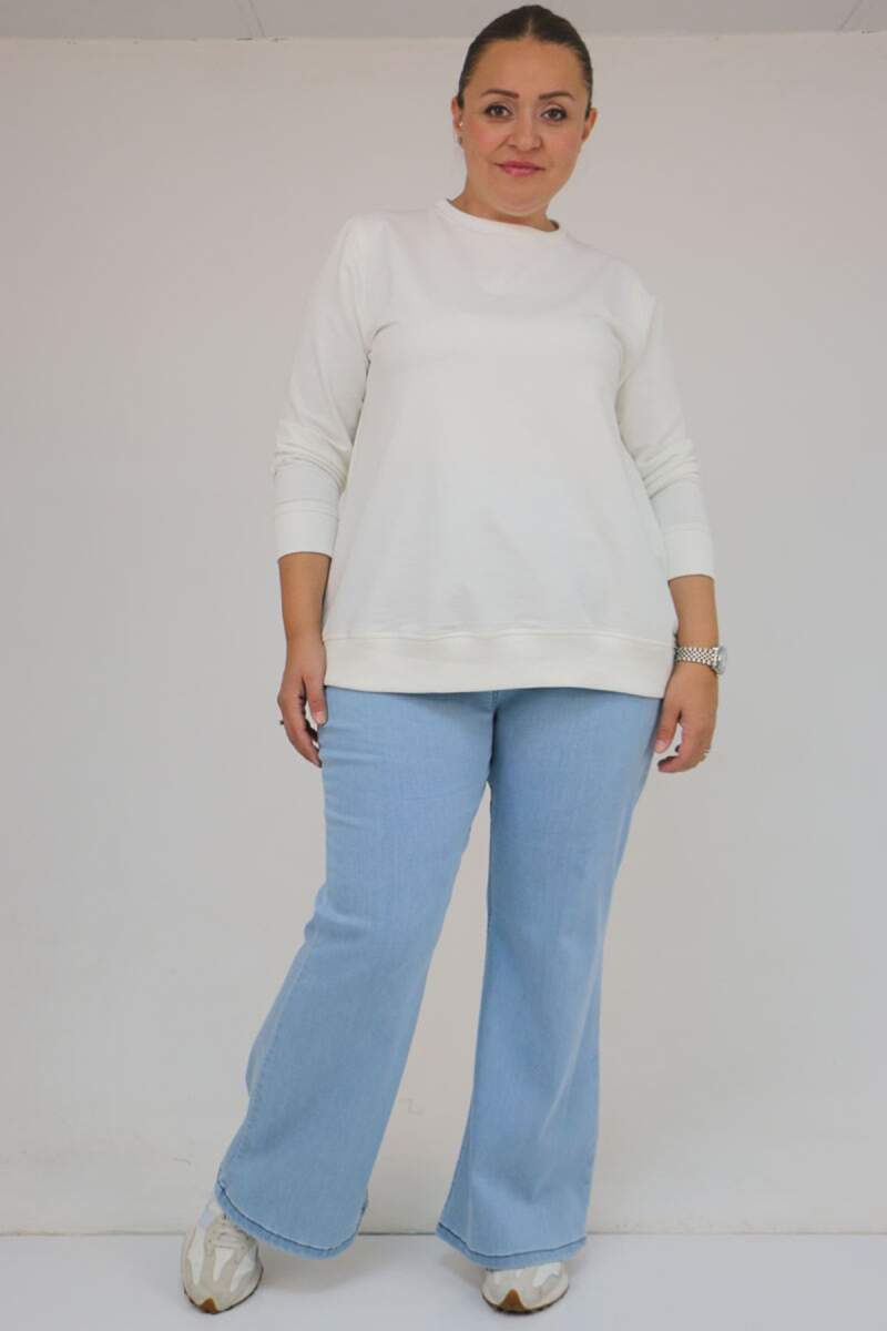 9137-18 Büyük Beden Beli Lastikli İspanyol Paça Kot Pantolon - Buz Mavi