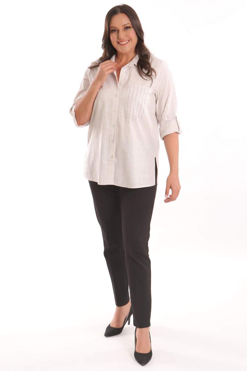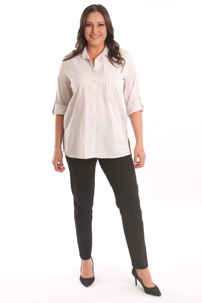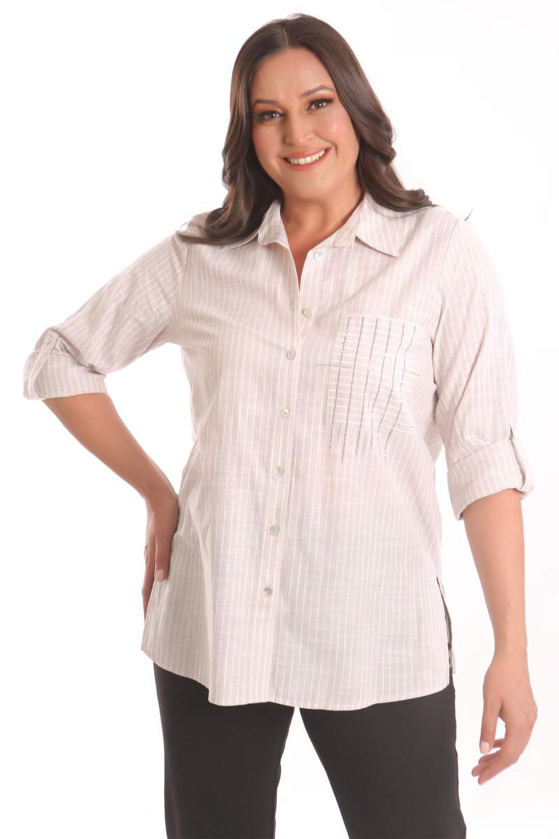 Angelino Büyük Beden Bej Cebi Taş Baskılı Çizgili Gömlek, bahar ve yaz aylarının bitmeyen enerjisini çizgili gömlek ile yakala! Hoş dokusu ile seni büyüleyecek olan bu parçayı kumaş pantolonlar ile birleştirmek isteyebilirsin. Hafif dokusu ile rahatlığı hissederken en yoğun günlerin bile enerjik geçecek! :)