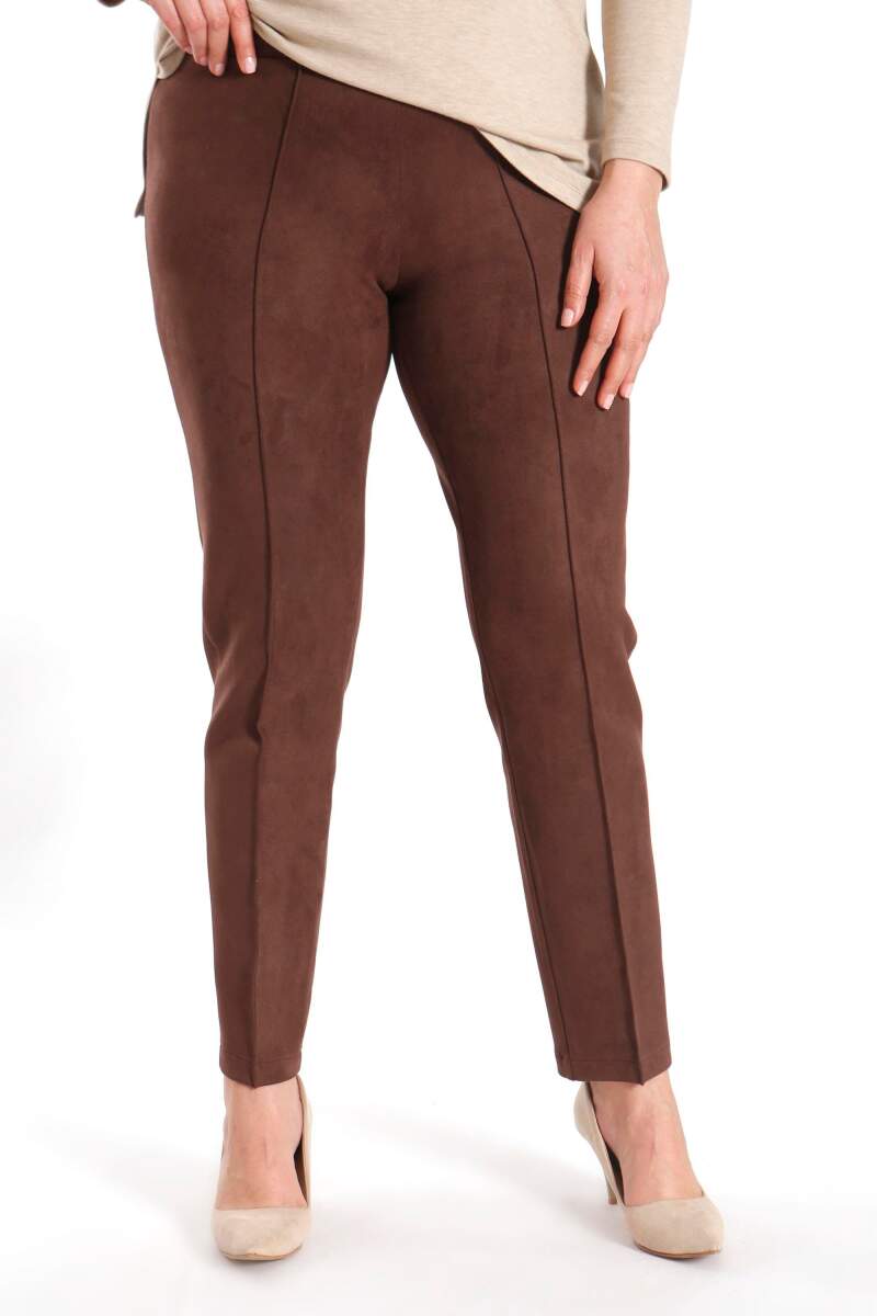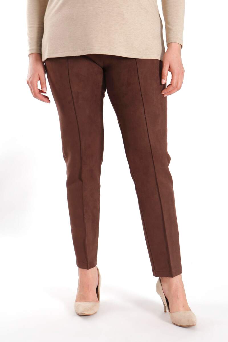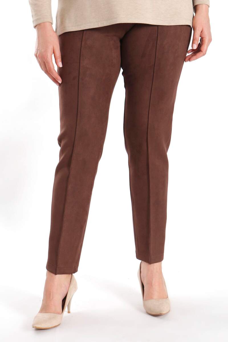 Angelino Büyük Beden Çıma Dikişli Kahverengi Pantolon, modern kesimi feminen şıklığa yeni bir dokunuş katıyor. Süet pantolonumuz , desenli bluzlar ile tamamlayarak sezon trendlerini yansıta bilirsiniz.