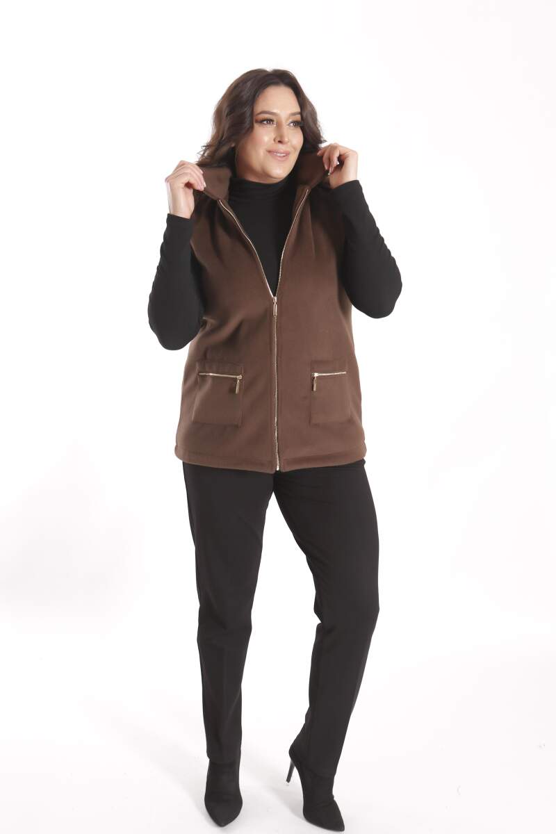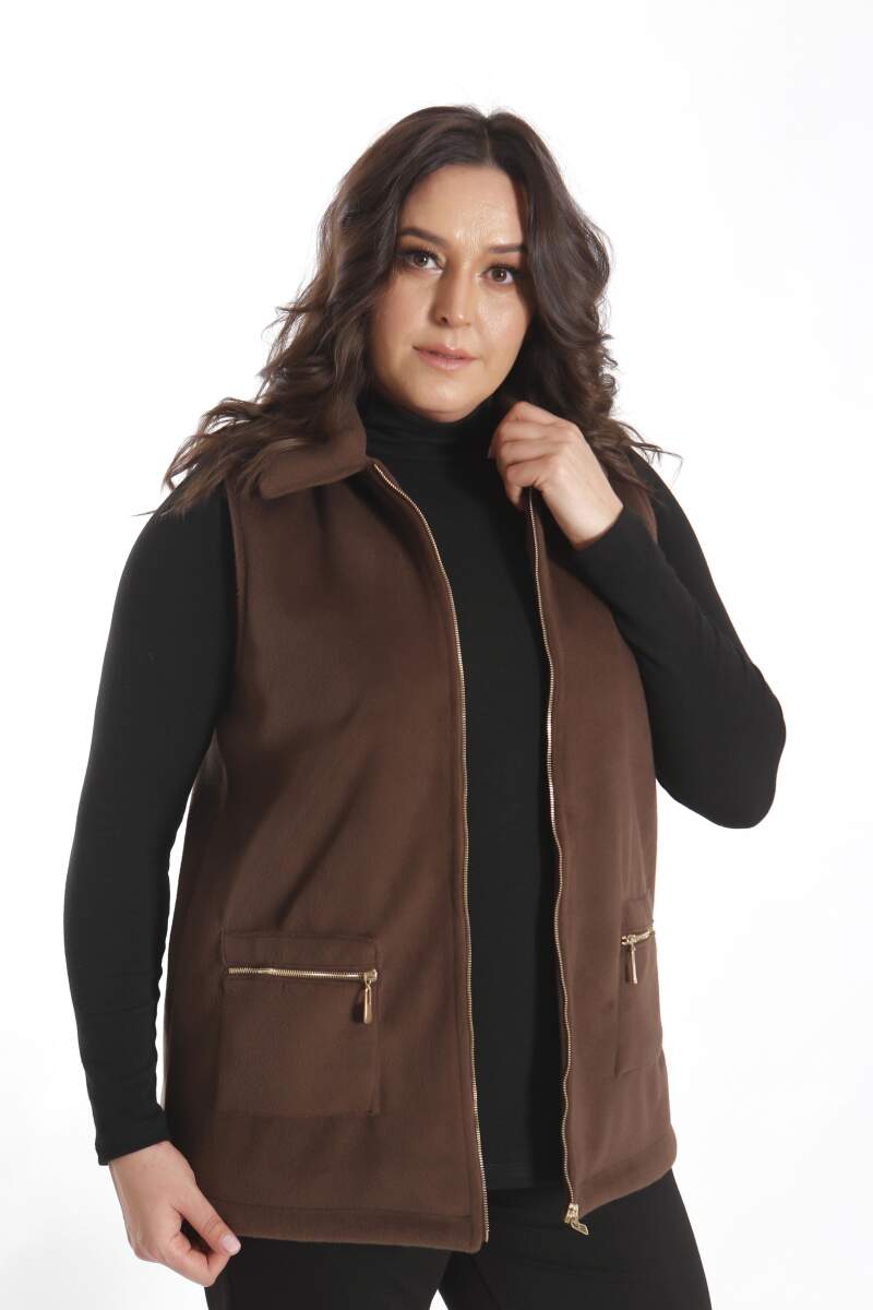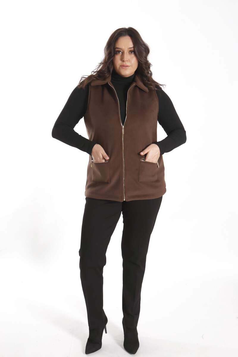 Angelino Büyük Beden Fermuarlı Cep Detaylı Kaşe Kahverengi Yelek modeli; hoş, yumuşak dokusu ile soğuk havalarda bile şıklığın mümkün olabildiğini, muhteşem görüntüsüyle sizlere kanıtlıyor. Ön kaşe detaylı yelek modeli; yaka duruşu, rahat kesimi ve önünde bulunan düğme detayı ile sizleri ileri seviye şıklığa davet ediyor.