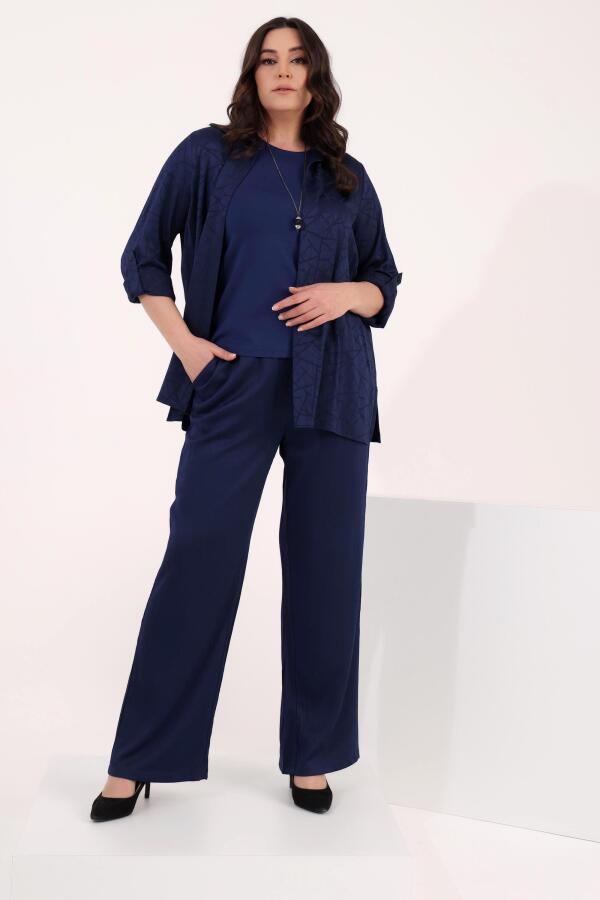 Angelino Büyük Beden İndigo Beli Lastikli Pantolon, modern kesimi feminen şıklığa yeni bir dokunuş katıyor. Geniş paça pantolonu, desenli bluzlar ile tamamlayarak sezon trendlerini yansıta bilirsiniz.