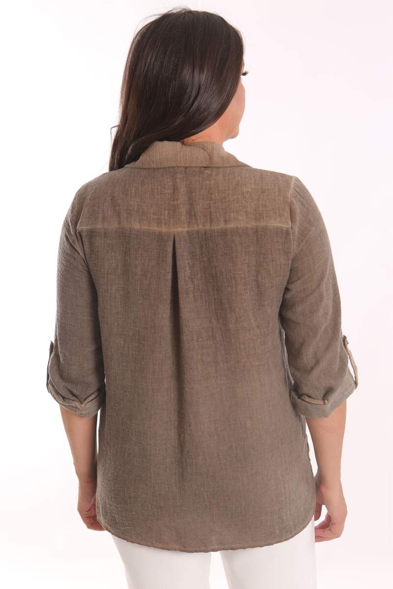 Angelino Büyük Beden Kahverengi Taş Baskılı Batik Yıkamalı Gömlek, bahar ve yaz aylarının bitmeyen enerjisini nakış detayından alan gömleğimiz ile yakala! Hoş dokusu ile seni büyüleyecek olan bu gömleğimizi kumaş pantolonlar ile birleştirmek isteyebilirsin. Hafif dokusu ile rahatlığı hissederken en yoğun günlerin bile enerjik geçecek! :)
