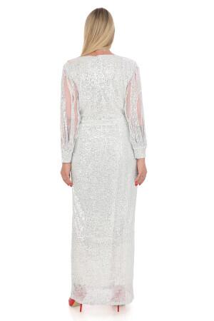 Angelino Büyük Beden Kolları Saçaklı Uzun Pul Payet Abiye Elbise Gümüş abiye elbise.