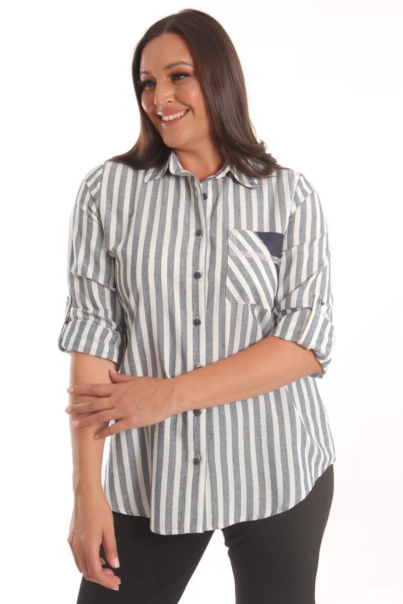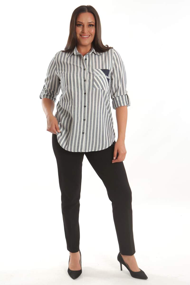 Angelino Büyük Beden Lacivert Taş Baskılı Çizgili Gömlek , bahar ve yaz aylarının bitmeyen enerjisini desenli gömlek ile yakala! Hoş dokusu ve cıvıl cıvıl renkleri ile seni büyüleyecek olan bu parçayı kumaş pantolonlar ile birleştirmek isteyebilirsin. Hafif dokusu ile rahatlığı hissederken en yoğun günlerin bile enerjik geçecek! :)