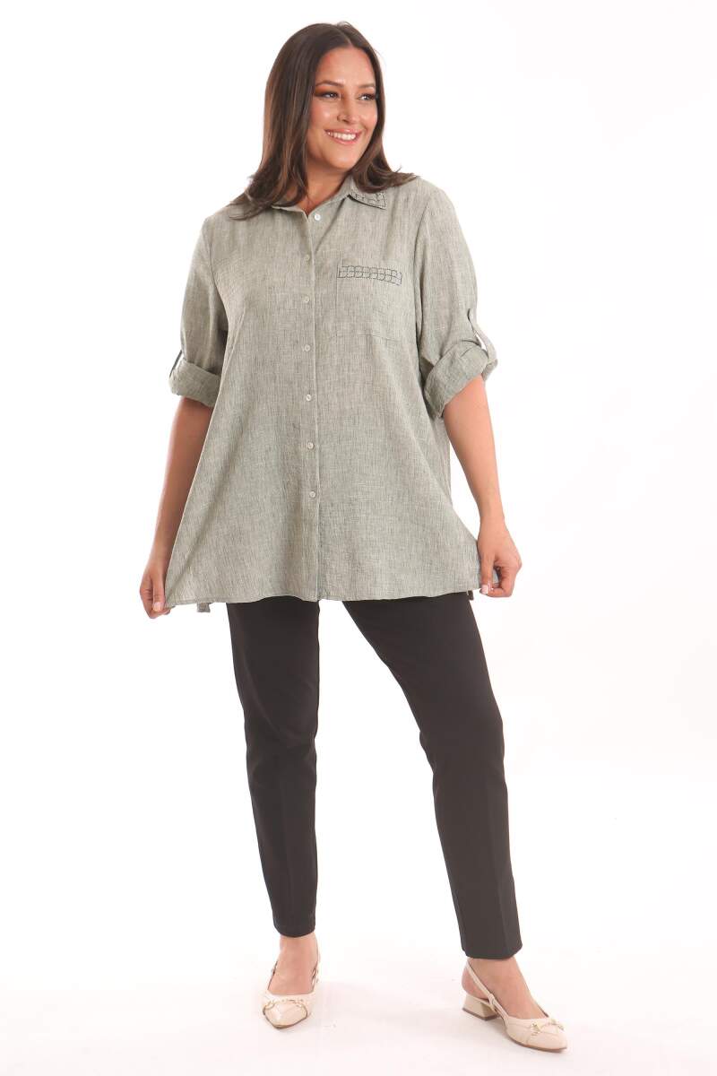 Angelino Büyük Beden Taş Baskılı Haki Gömlek, bahar ve yaz aylarının bitmeyen enerjisini basic gömlek ile yakala! Hoş dokusu ve cıvıl cıvıl renkleri ile seni büyüleyecek olan bu parçayı kumaş pantolonlar ile birleştirmek isteyebilirsin. Hafif dokusu ile rahatlığı hissederken en yoğun günlerin bile enerjik geçecek! :)