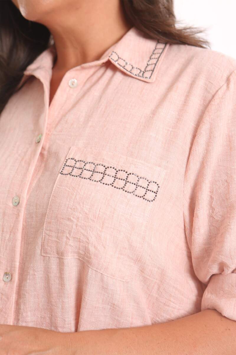 Angelino Büyük Beden Taş Baskılı Pudra Gömlek, bahar ve yaz aylarının bitmeyen enerjisini basic gömlek ile yakala! Hoş dokusu ve cıvıl cıvıl renkleri ile seni büyüleyecek olan bu parçayı kumaş pantolonlar ile birleştirmek isteyebilirsin. Hafif dokusu ile rahatlığı hissederken en yoğun günlerin bile enerjik geçecek! :)