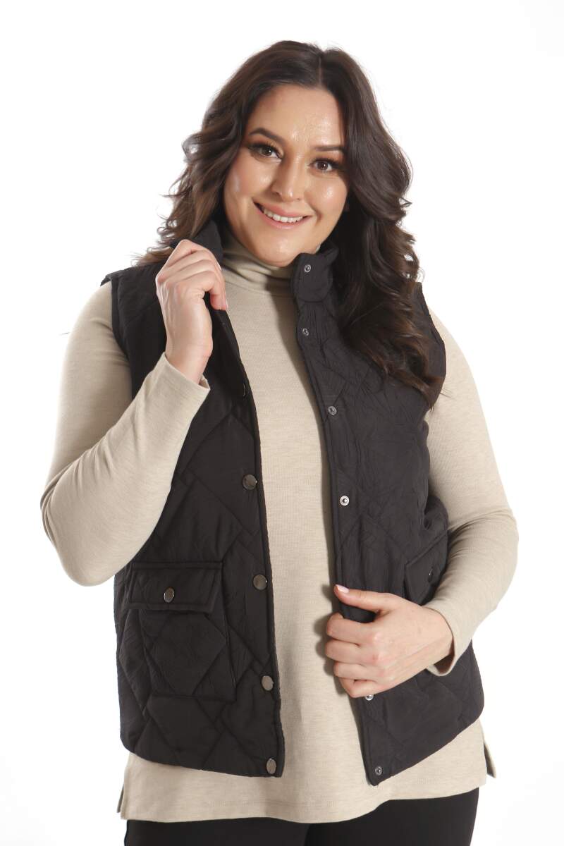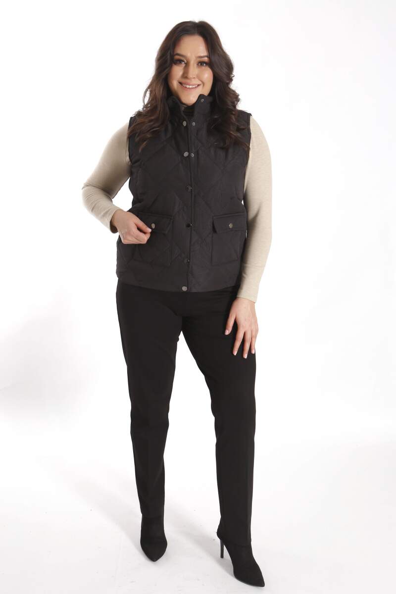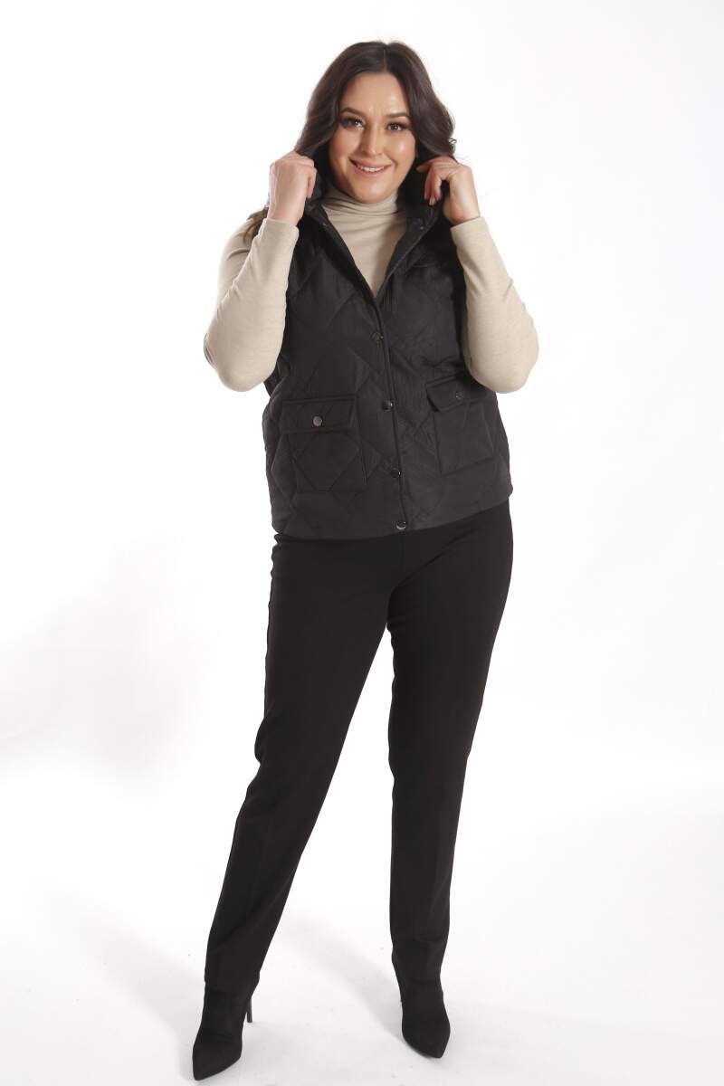 Angelino Büyük Çıt Çıt Düğmeli Kapitone Siyah Yelek modeli; hoş, yumuşak dokusu ile soğuk havalarda bile şıklığın mümkün olabildiğini, muhteşem görüntüsüyle sizlere kanıtlıyor. Ön kapitone detaylı yelek modeli; yaka duruşu, rahat kesimi ve önünde bulunan düğme detayı ile sizleri ileri seviye şıklığa davet ediyor.